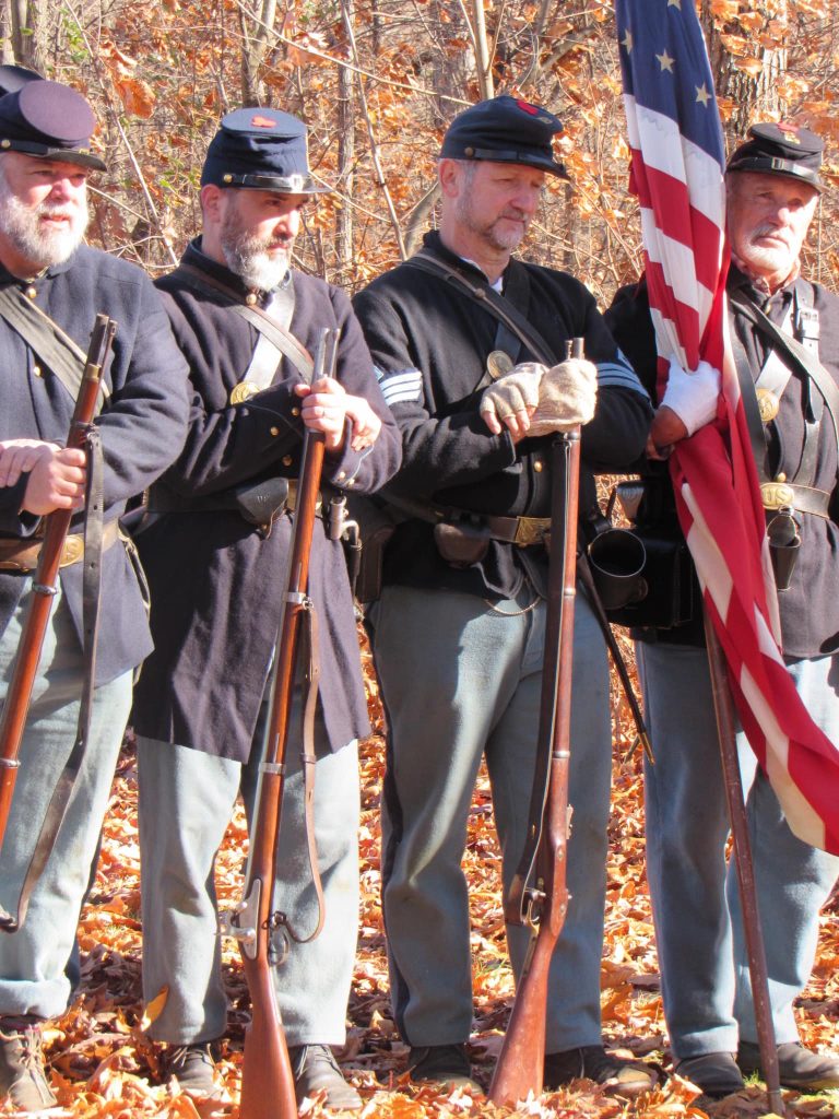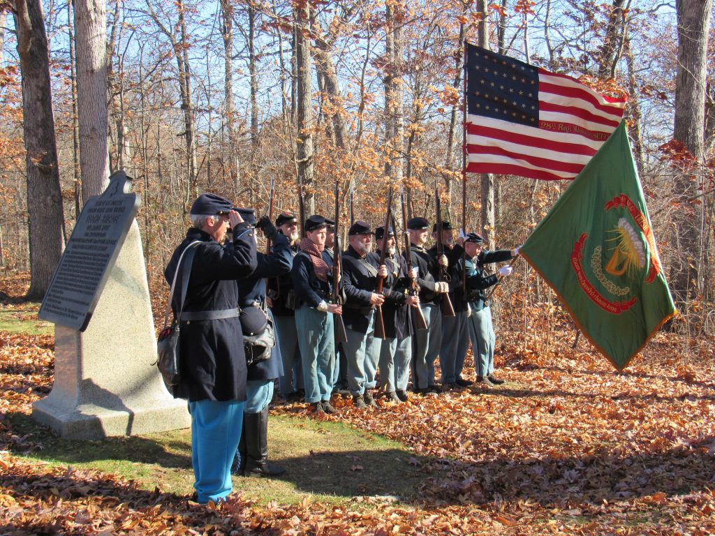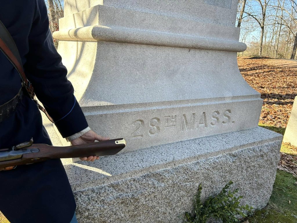 Annually, the Recreated 28th Massachusetts Volunteer Infantry marks the Monuments to the Irish Brigade on the Gettysburg Battlefield.