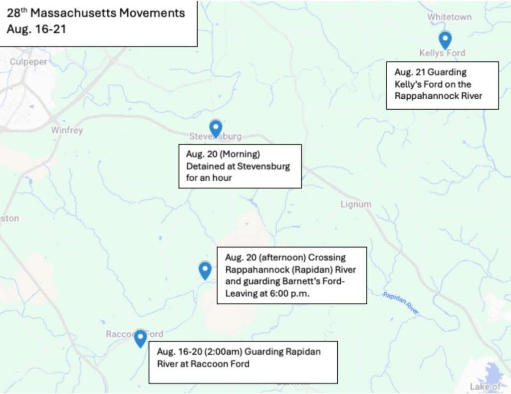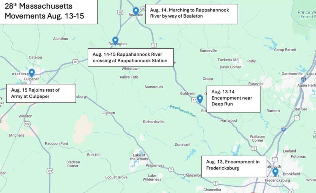 In total, The Regiment marched about 41 miles between Fredericksburg and Culpeper between August 13-15.