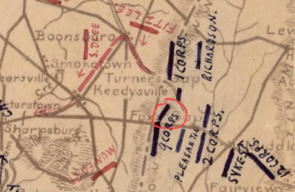 Gen. O.B. Willcox (First Division CO), noted that they “…crossed to the west bank by the stone bridge, and took position on Rodman’s right and on both sides of the road, toward Sharpsburg, and engaged the enemy driving them in confusion from their position opposite our front, and held the position till ordered by General Burnside to fall back a short distance…”