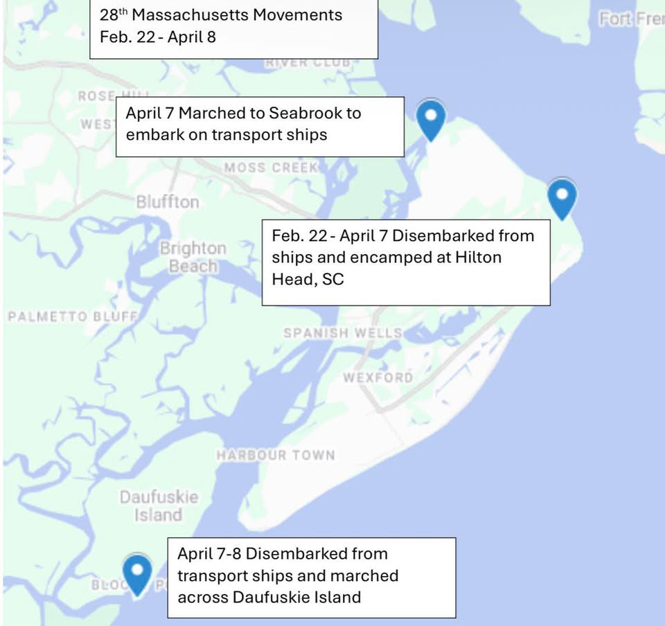 During the siege, the 28th Mass. was spread across Daufuskie Island, as well as Jones and Bird’s Islands.