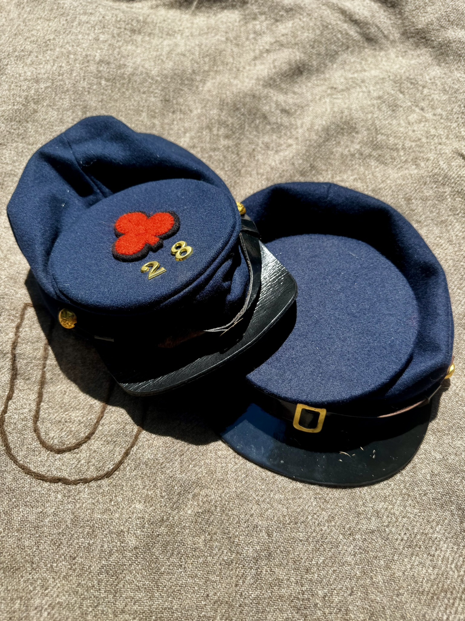 Acceptable: In limited numbers and only with leadership permission per event guidelines: private purchase forage caps, McDowell-type, civilian hats/slouch (1863+)
