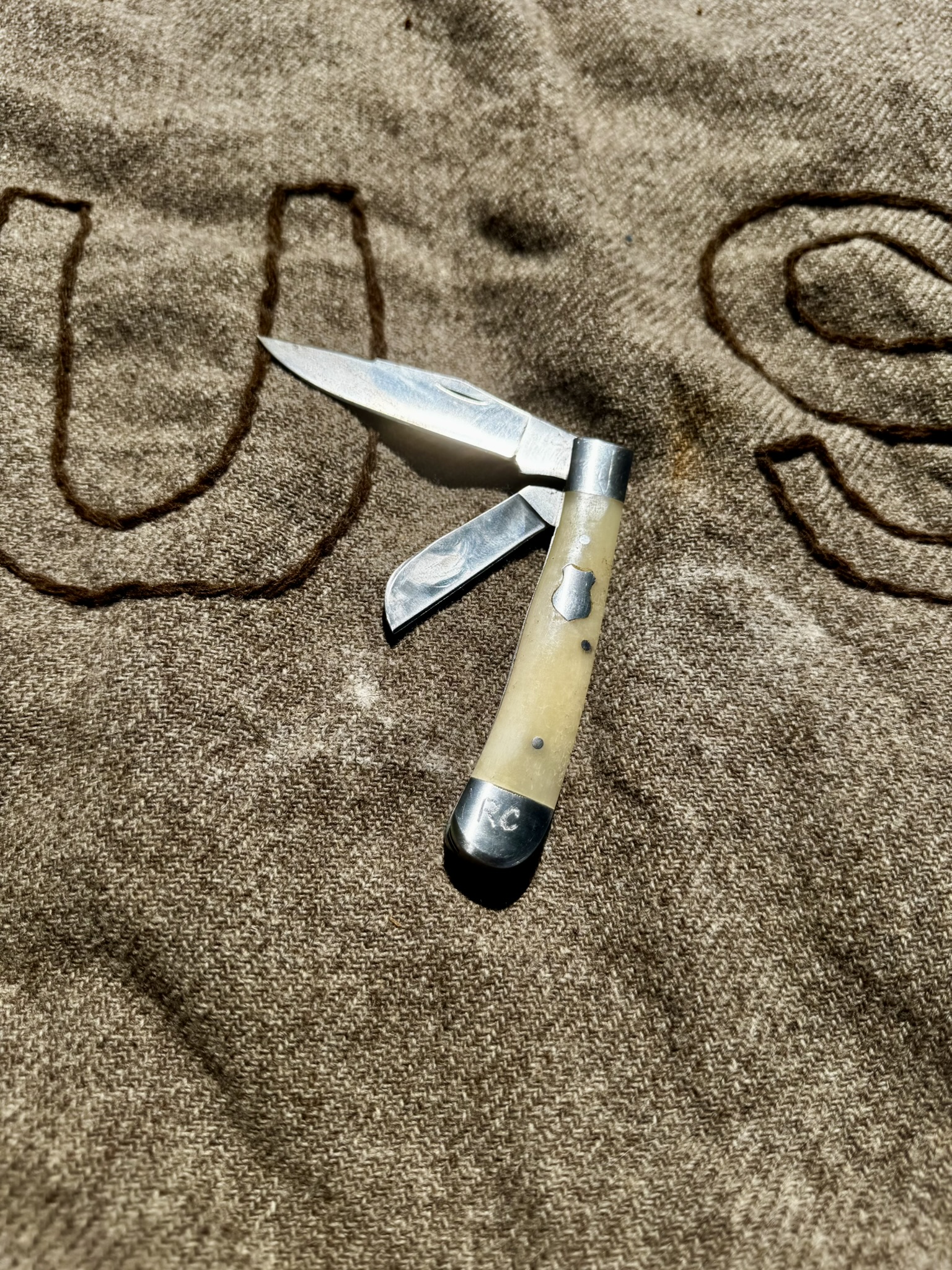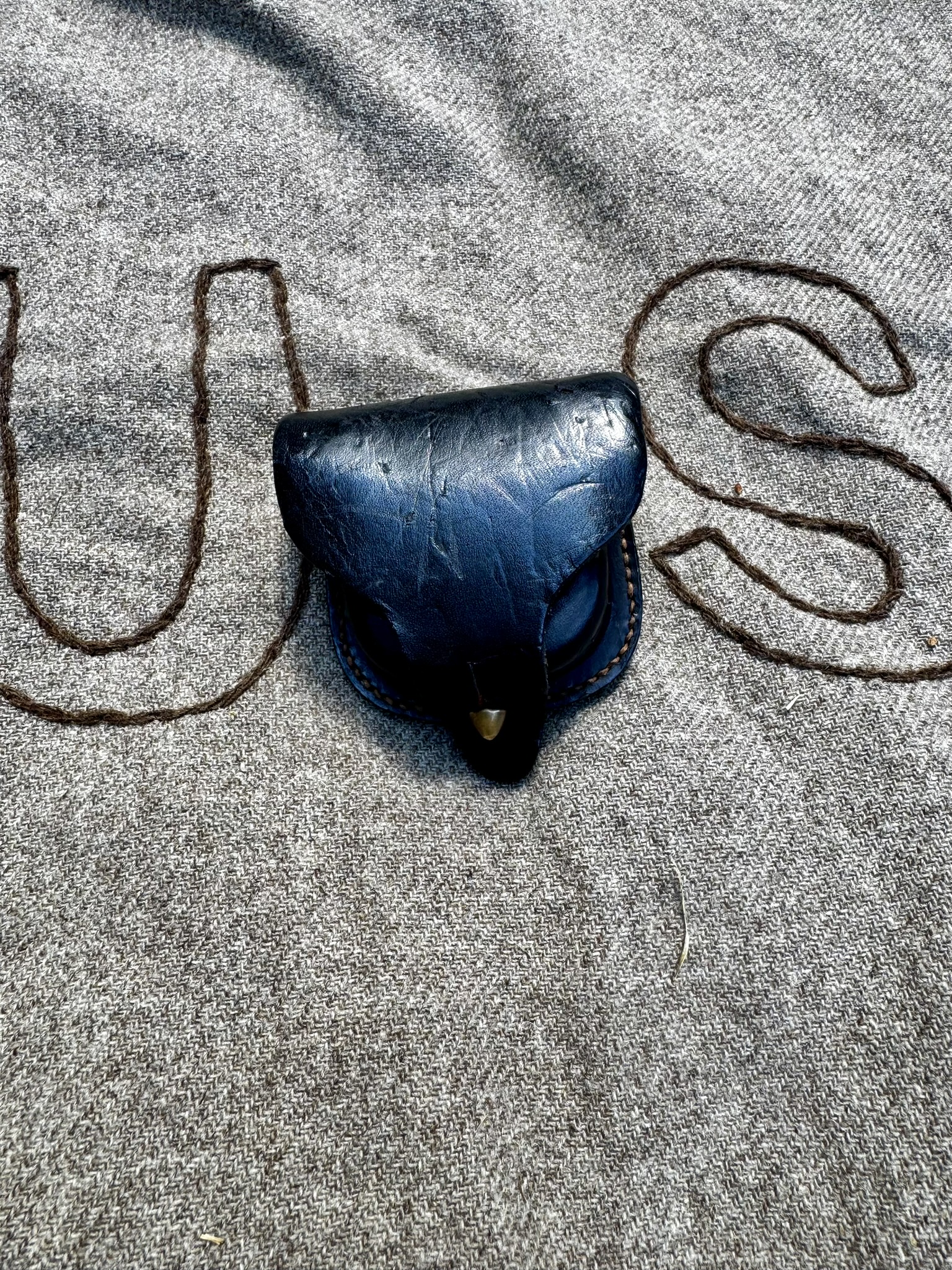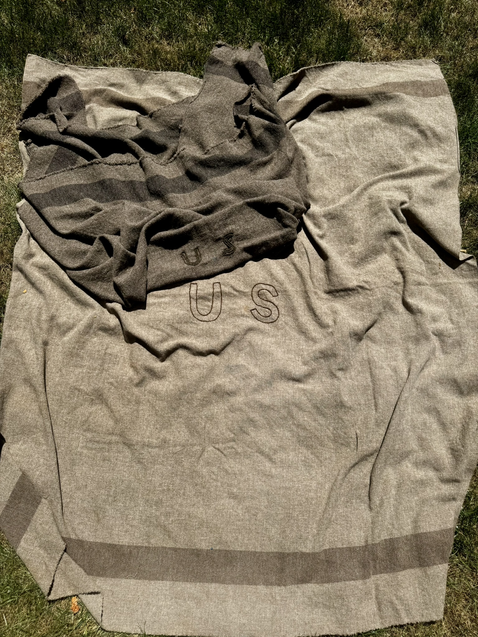 Preferred: 100% wool, gray or brown, hand sewn “US”, unfinished edge