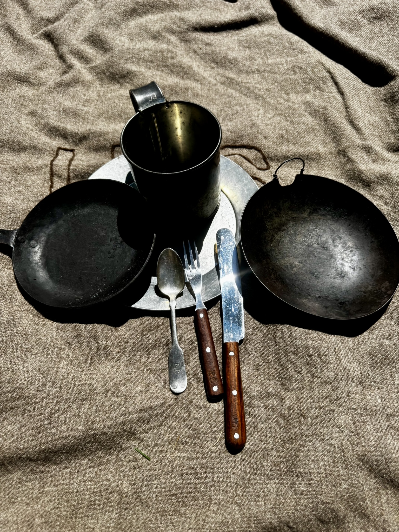 Preferred: Period accurate tin cup, a tin plate, and knife, fork, and spoon.