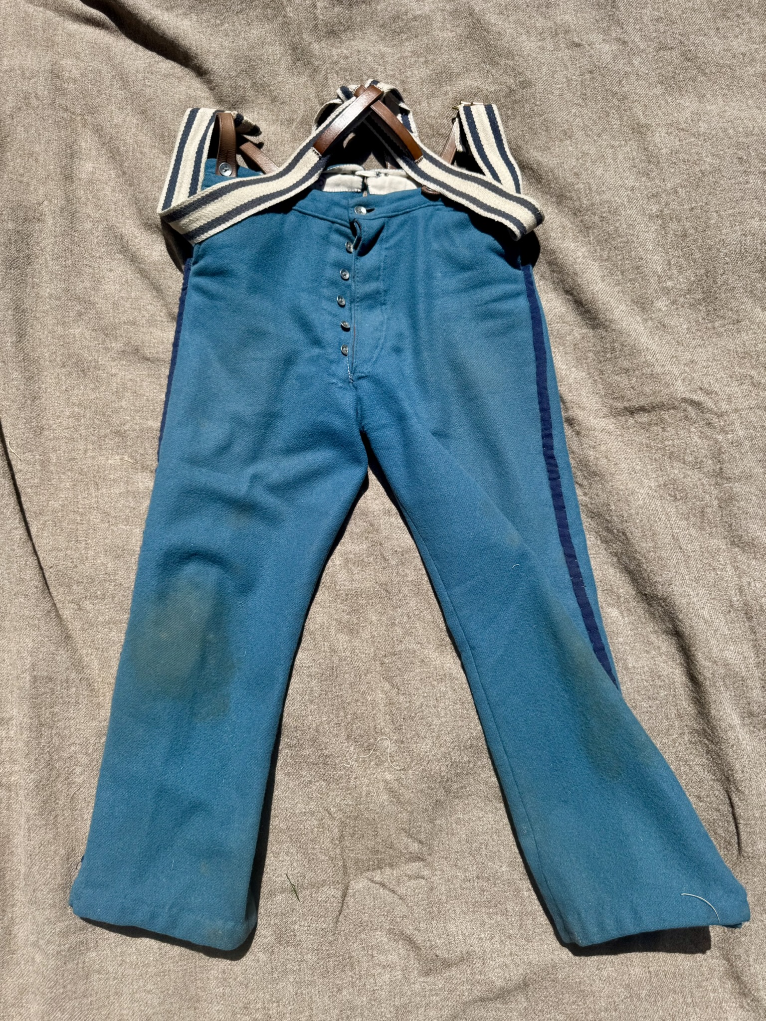 Unacceptable: Cheap sutler trousers, dark blue, and pre-war versions