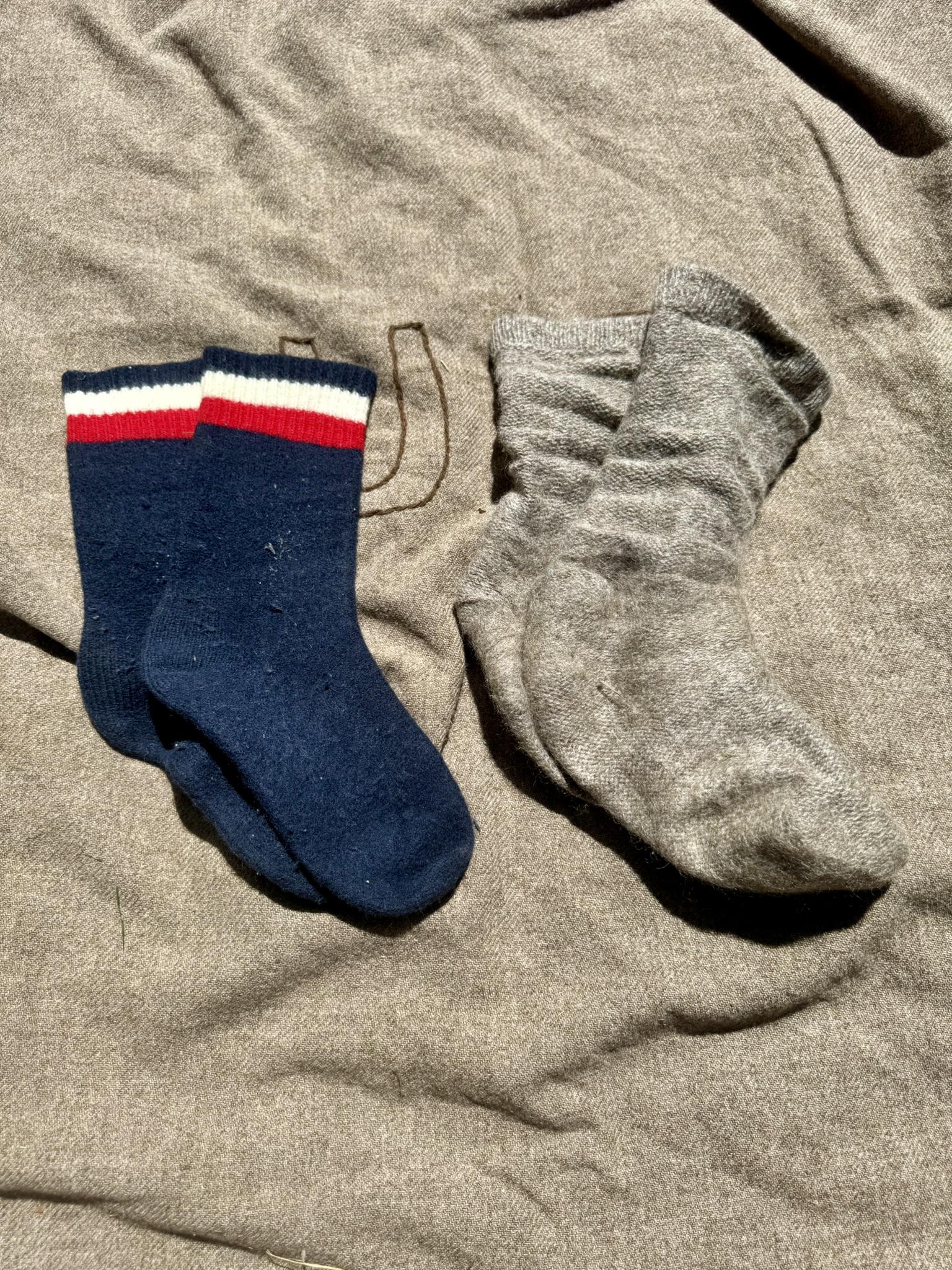 Unacceptable: Modern hiking socks, rag wool socks, socks with low tops.